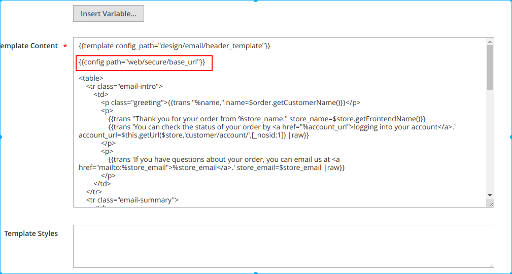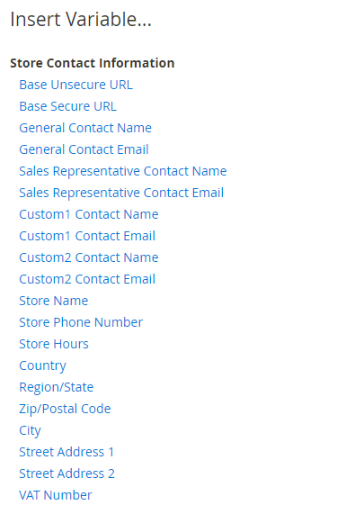 要将商店或其他自定义信息添加到模板中去,可以使用系统变量。我们可以在 System > Custom Variables 中创建自定义系统变量:现在让我们向模板内容中添加自定义变量: